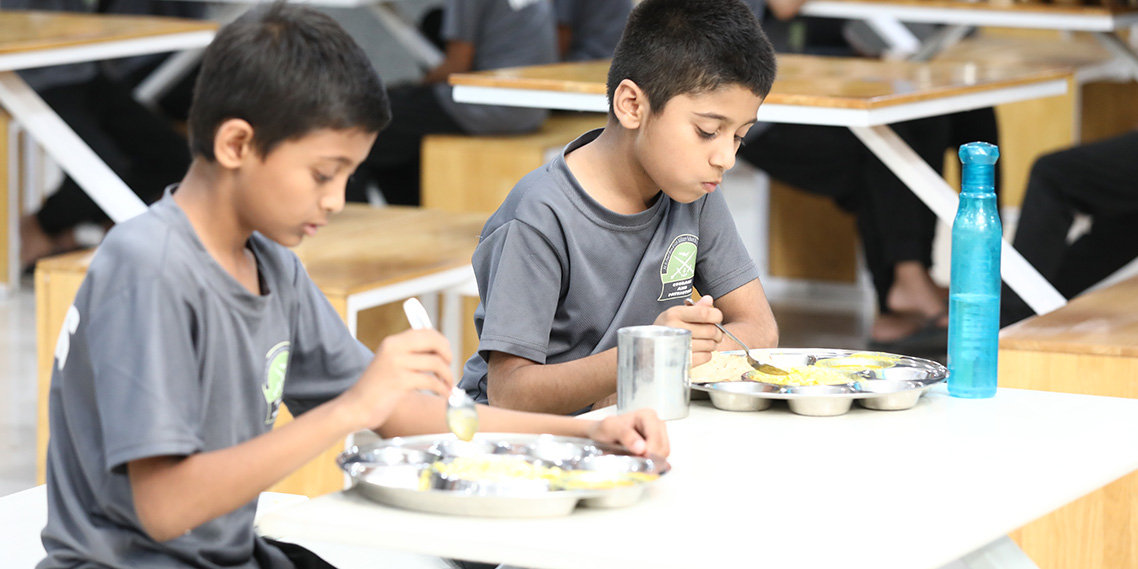 The School Cafeteria is a bright, well-ventilated, hygienic space with a colourful lively ambience. The cafeteria serves healthy, nutritious vegetarian snacks and meals. The cafeteria does not serve any junk food.