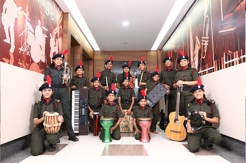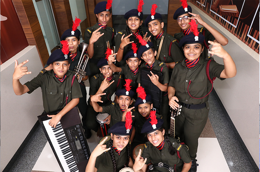 Military School band consists of woodwind instruments, brass instruments and percussion instruments. This band is used to synchronize to movement of cadets during military training and other programs
